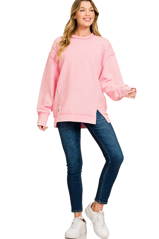 Acid Washed Double Ribbed Exposed-Seam Pullover