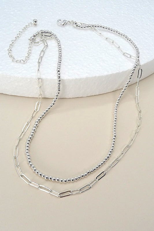 Silver double chain necklace with studs