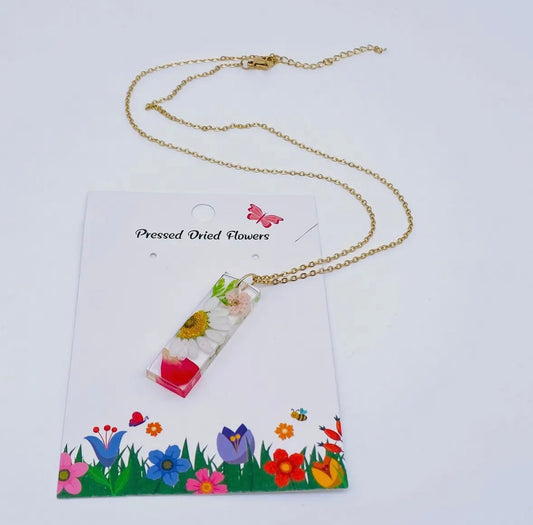 Daisy & Daffodil Dried Flowers Resin Necklace