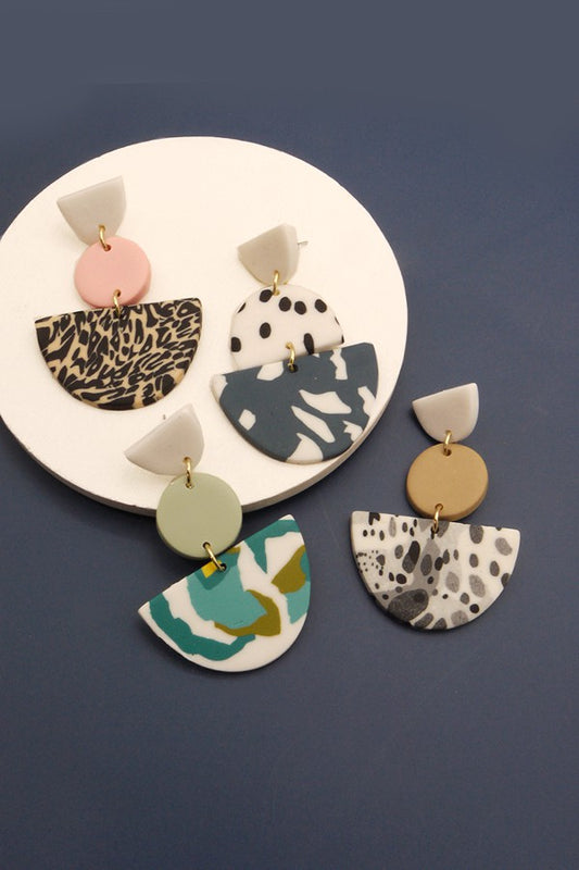FOUR COLORS - Half Moon Metal and Wood Drop Earrings