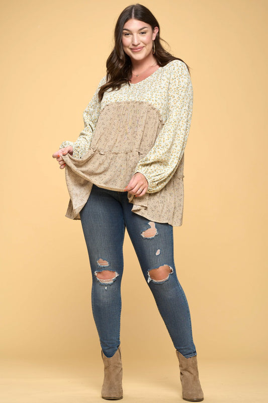 TWO COLORS - Ditzy Floral Tiered Babydoll Blouse (S-3X)