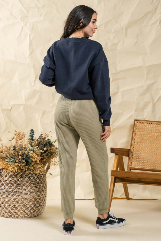 THREE COLORS - Waffle Knit High Waist Lounge Pants